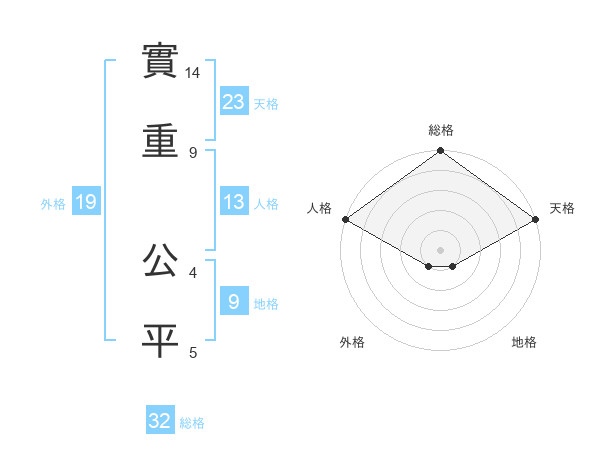 實重 公平さんの総格は32画の5点!