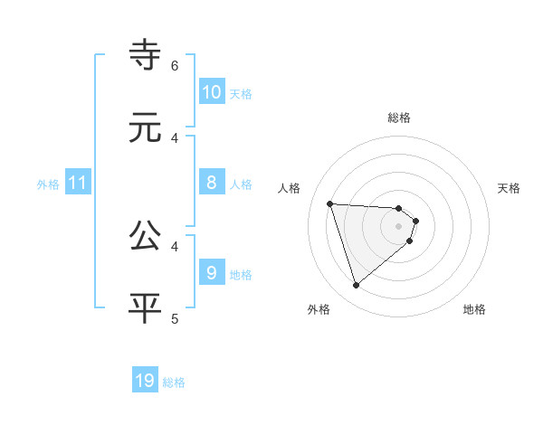 寺元 公平さんの外格は11画の4点!