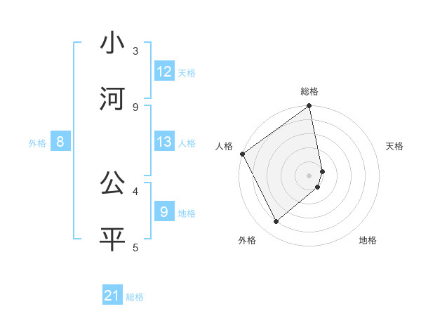 小河 公平さんの総格は21画の5点!