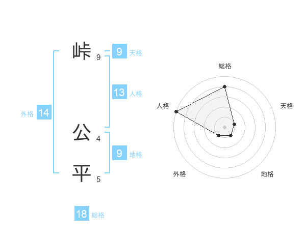 峠 公平さんの総格は18画の4点!