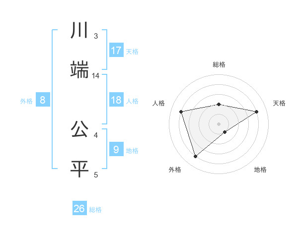 川端 公平さんの天格は17画の4点!