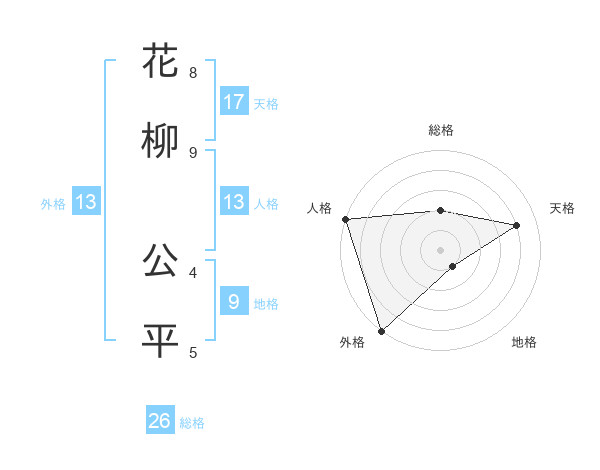 花柳 公平さんの外格は13画の5点!
