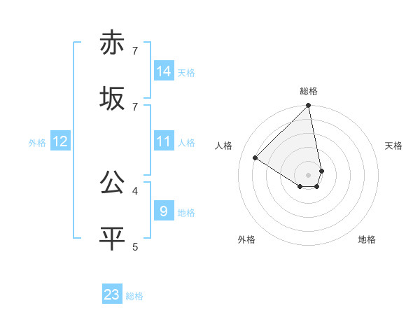 赤坂 公平さんを姓名の画数から五運を鑑定