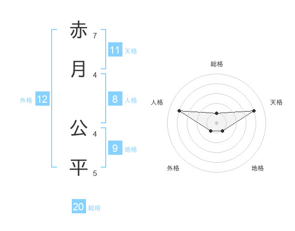 赤月 公平さんの天格は11画の4点!