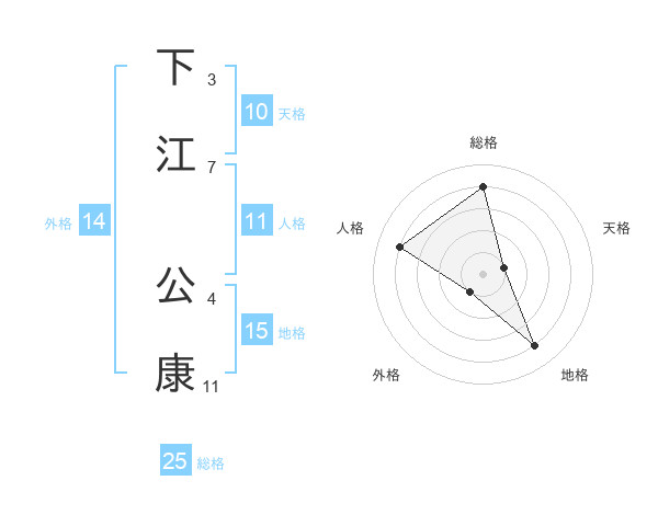 下江 公康さんの総格は25画の4点!