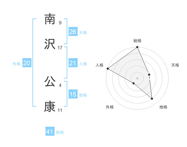 南沢 公康さんの総格は41画の5点!