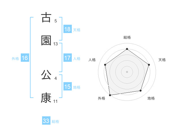 古園 公康さんの総格は33画の4点!