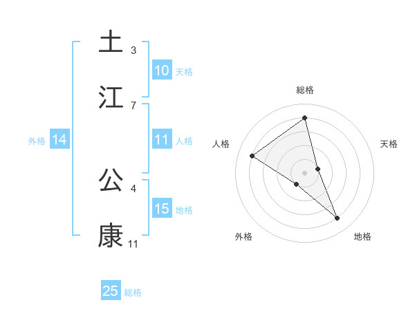 土江 公康さんの総格は25画の4点!