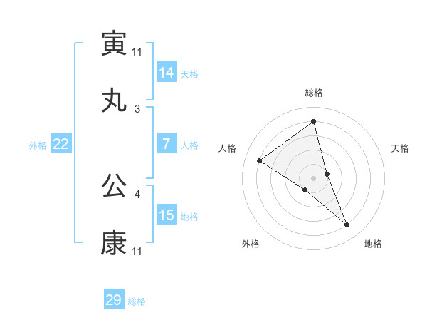 寅丸 公康さんを姓名の画数から五運を鑑定