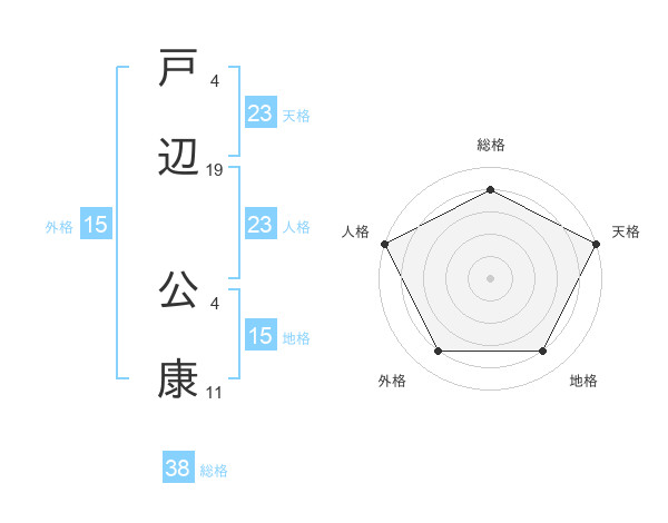 戸辺 公康さんを姓名の画数から五運を鑑定