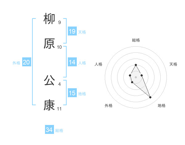 柳原 公康さんの天格は19画の1点!