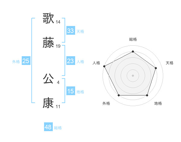 歌藤 公康さんを姓名の画数から五運を鑑定