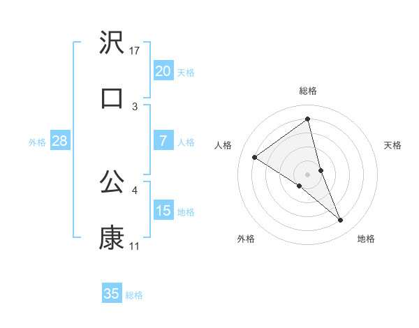 沢口 公康さんの総格は35画の4点!