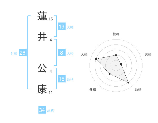 蓮井 公康さんの地格は15画の4点!