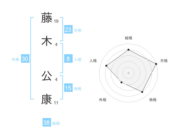 藤木 公康さんの総格は38画の4点!