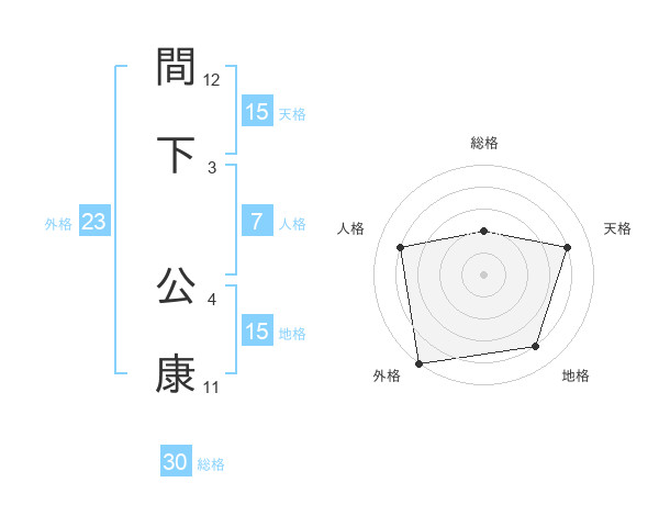 間下 公康さんの天格は15画の4点!