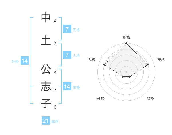 中土 公志子さんの天格は7画の4点!