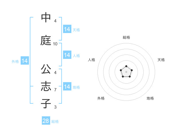 中庭 公志子さんを姓名の画数から五運を鑑定