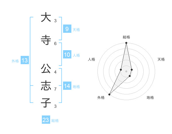 大寺 公志子さんを姓名の画数から五運を鑑定