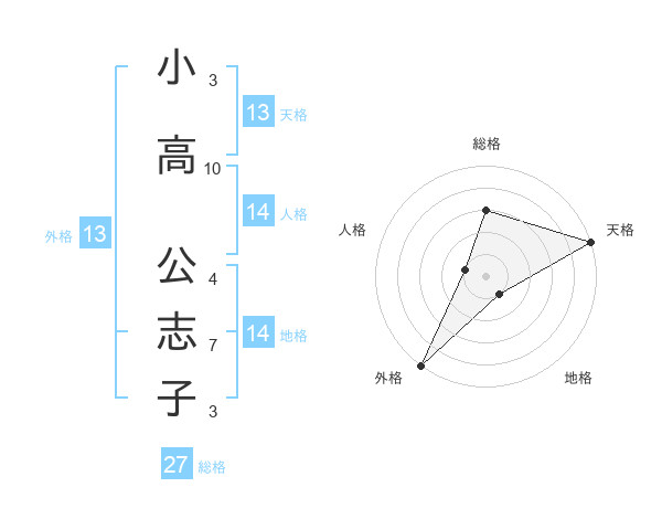 小高 公志子さんの外格は13画の5点!