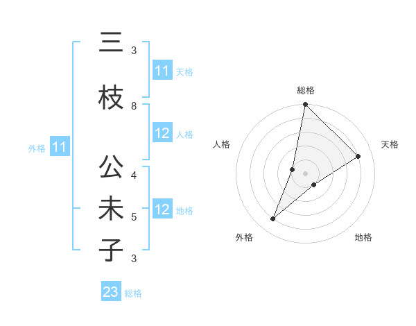 三枝 公未子さんを姓名の画数から五運を鑑定