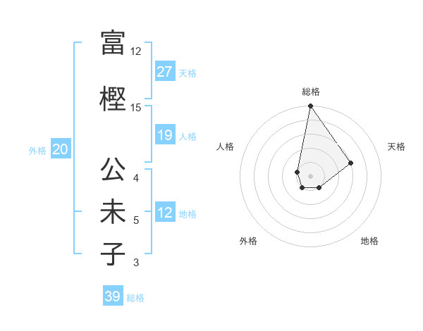 富樫 公未子さんの総格は39画の5点!