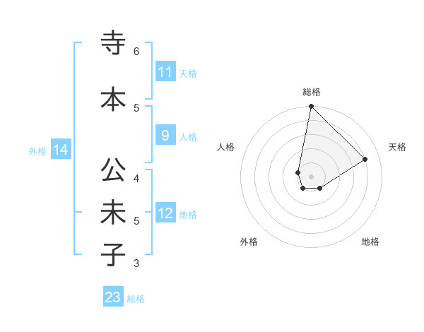 寺本 公未子さんの天格は11画の4点!