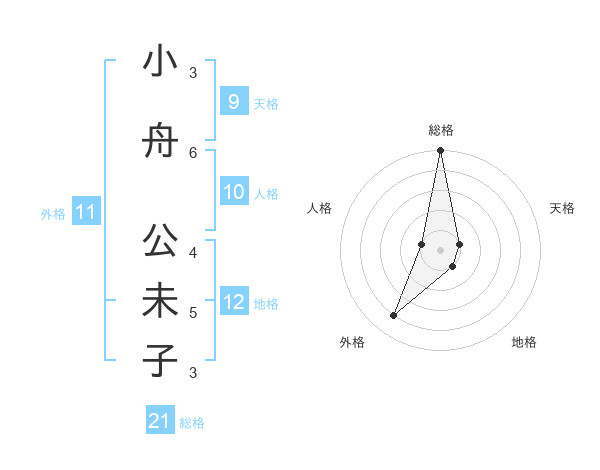 小舟 公未子さんを姓名の画数から五運を鑑定