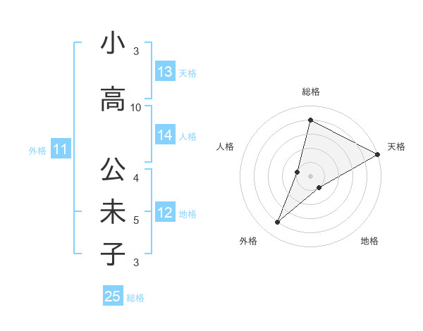 小高 公未子さんの天格は13画の5点!