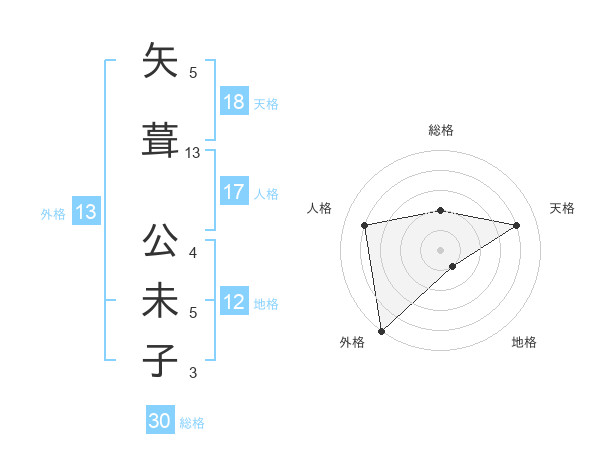 矢葺 公未子さんの外格は13画の5点!
