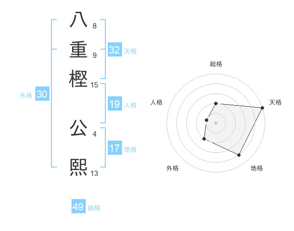八重樫 公熙さんの天格は32画の5点!