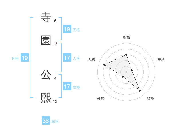 寺園 公熙さんの外格は19画の1点!