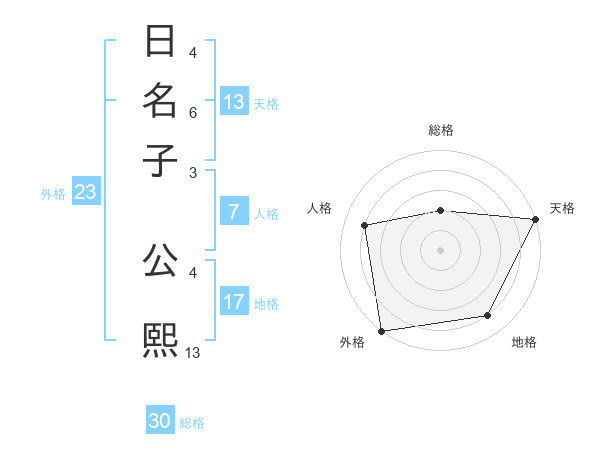 日名子 公熙さんの外格は23画の5点!