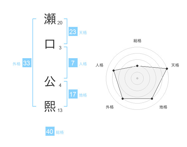 瀬口 公熙さんを姓名の画数から五運を鑑定