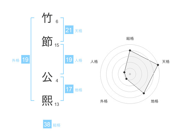 竹節 公熙さんの外格は19画の1点!