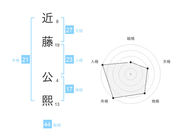 近藤 公熙さんの外格は21画の5点!