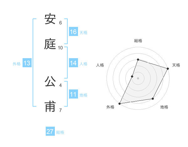 安庭 公甫さんの総格は27画の3点!