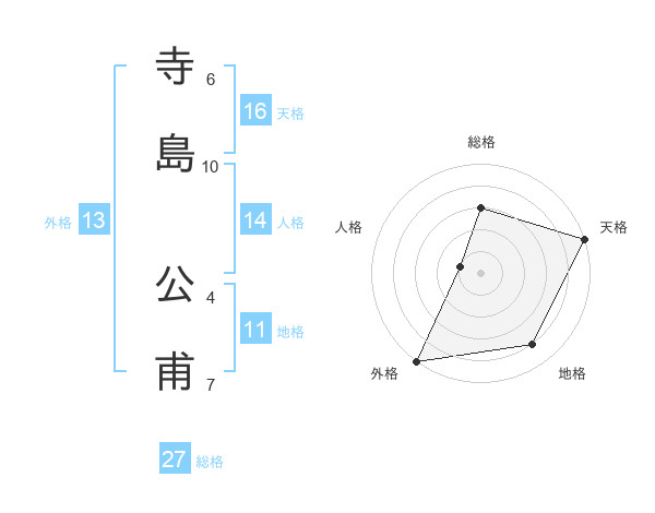 寺島 公甫さんの総格は27画の3点!