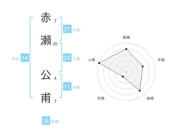 赤瀬 公甫さんを姓名の画数から五運を鑑定