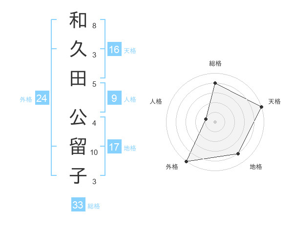 和久田 公留子さんを姓名の画数から五運を鑑定