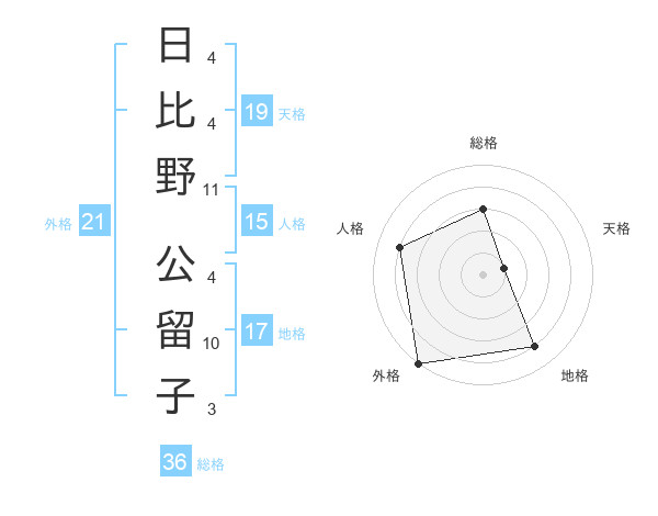 日比野 公留子さんを姓名の画数から五運を鑑定