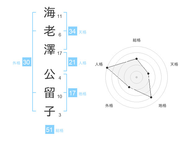 海老澤 公留子さんを姓名の画数から五運を鑑定