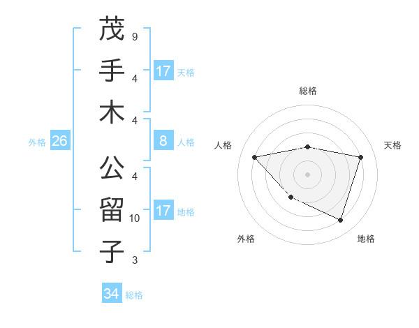 茂手木 公留子さんの天格は17画の4点!