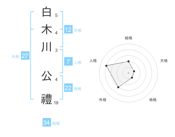 白木川 公禮さんの総格は34画の2点!
