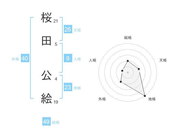 桜田 公絵さんを姓名の画数から五運を鑑定