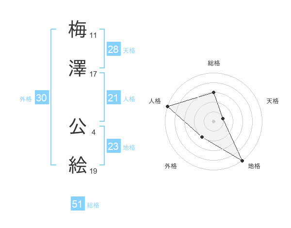 梅澤 公絵さんを姓名の画数から五運を鑑定