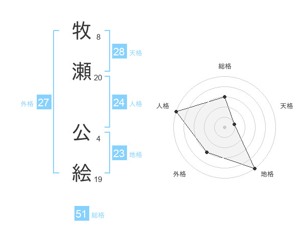 牧瀬 公絵さんの総格は51画の3点!