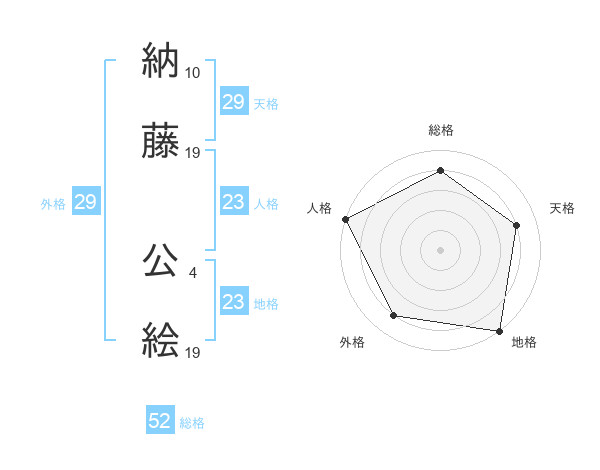 納藤 公絵さんの総格は52画の4点!