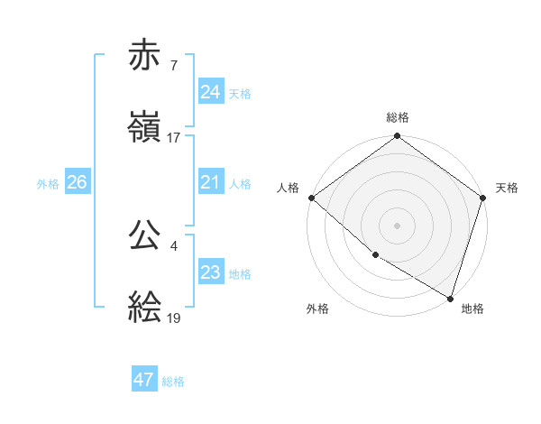 赤嶺 公絵さんの総格は47画の5点!
