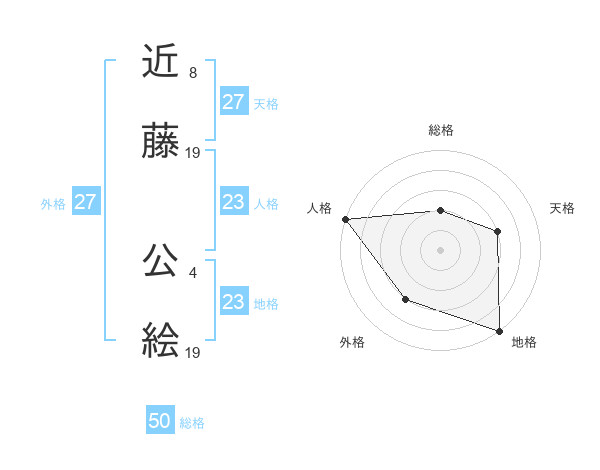 近藤 公絵さんの総格は50画の2点!